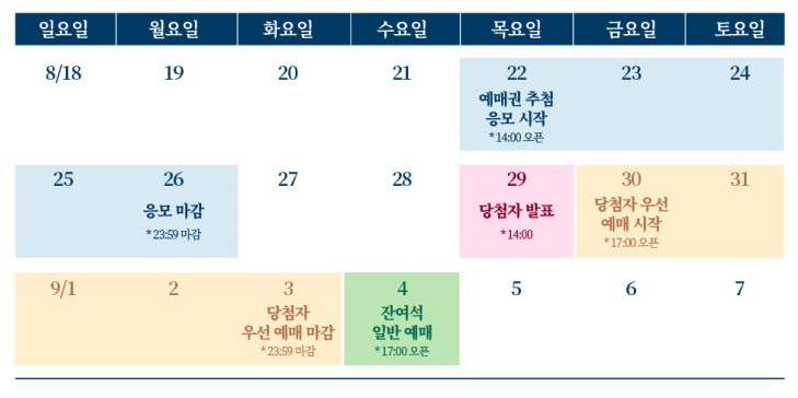 ✔︎ 당첨자 우선 예매 기간 종료 후 발생한 잔여석에 한하여 일반 예매(선착순)로 전환