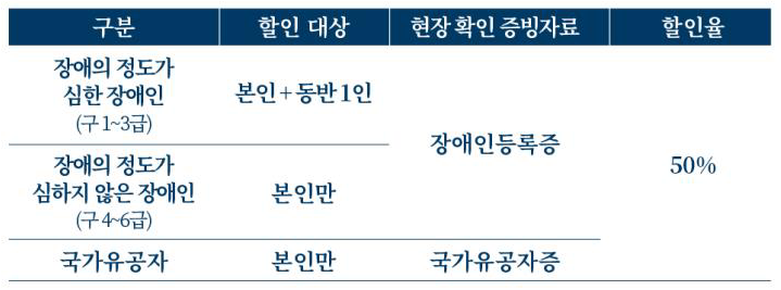 ※ 현장에서 증빙자료를 확인하오니 신분증(국가유공자증, 장애인복지카드 등)을 반드시 지참해 주시기 바랍니다.