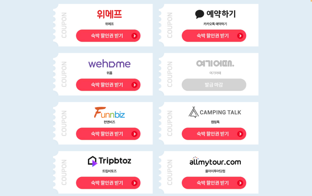 ✔︎ 사용방법: 참여 온라인 여행사를 통한 숙박 할인권 발급 및 사용 (1인 1매 선착순 사용가능)